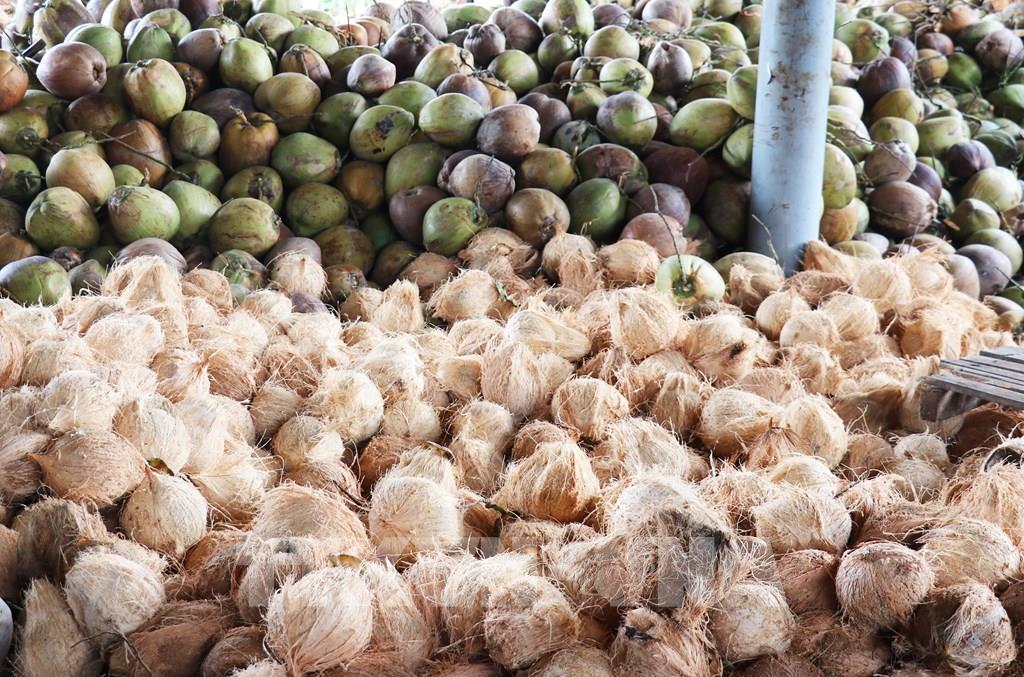 Dừa khô tại cơ sở thu mua dừa khô Lê Thị Nha. Ảnh: Hữu Chí – TTXVN