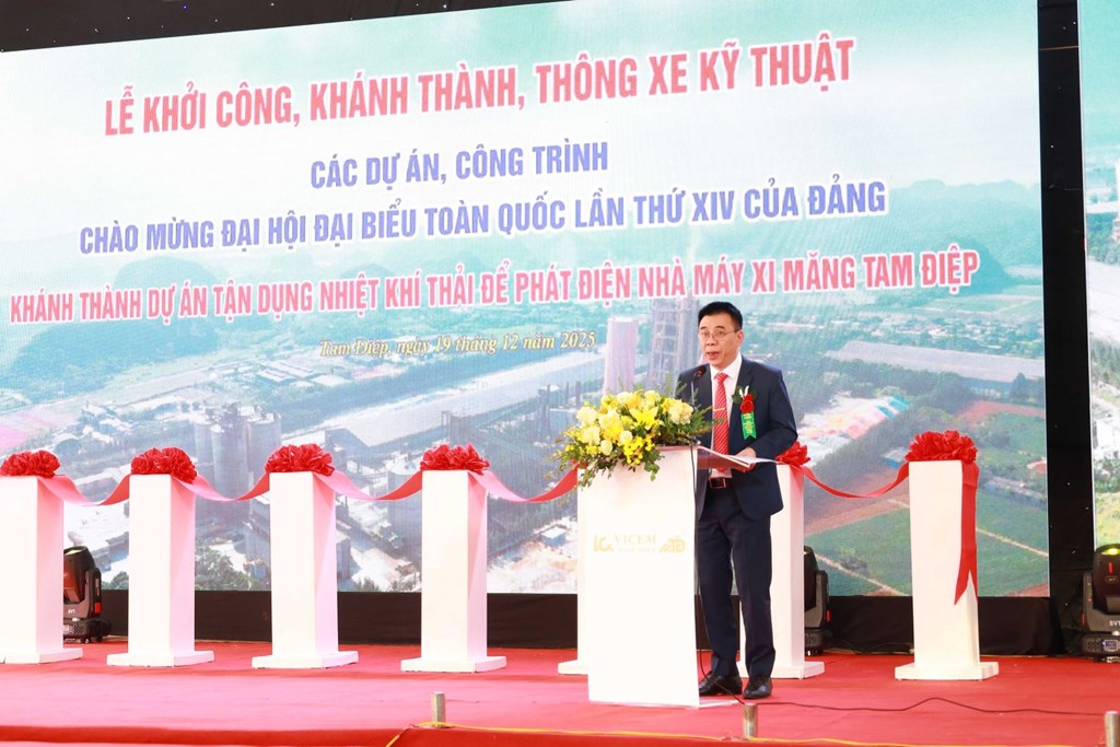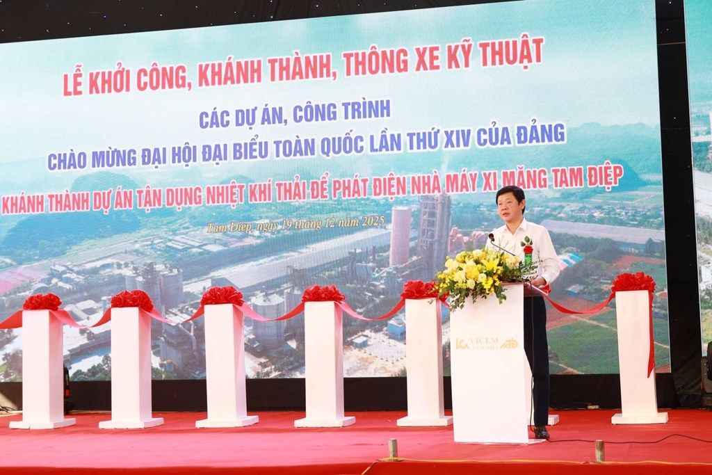Hòa chung không khí thi đua sôi nổi chào mừng Lễ khởi công, khánh thành, thông xe kỹ thuật các dự án, công trình trọng điểm hướng tới Đại hội Đại biểu toàn quốc lần thứ XIV của Đảng, ngày 19/12/2025, tại tỉnh Ninh Bình, Công ty Xi măng VICEM Tam Điệp (thuộc Tổng công ty Xi măng Việt Nam - VICEM) long trọng tổ chức Lễ khánh thành Dự án Tận dụng nhiệt khí thải để phát điện Nhà máy Xi măng Tam Điệp.