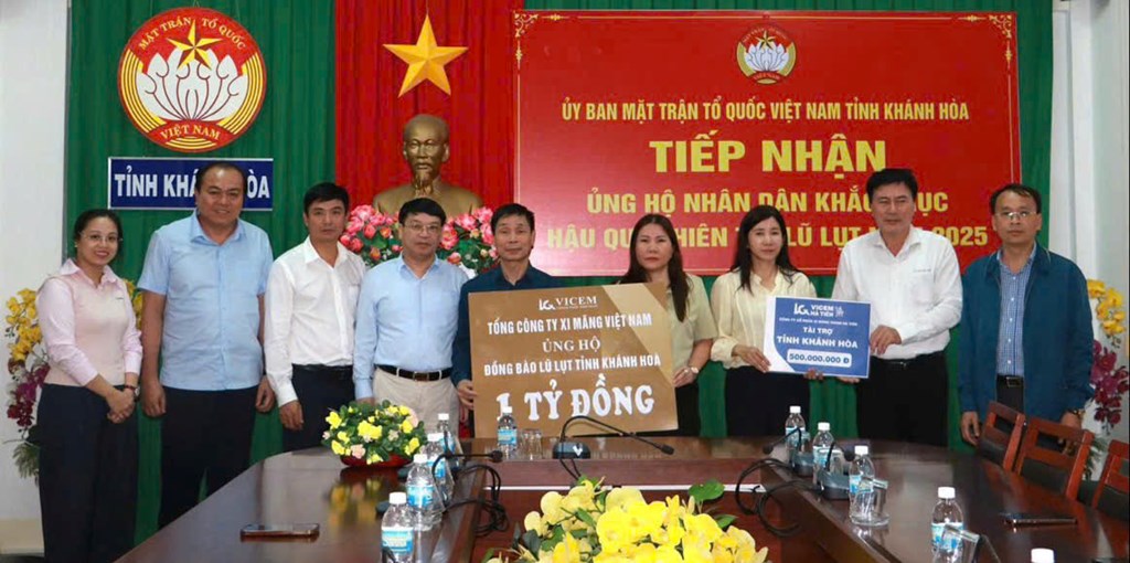 Theo đó, ông Nguyễn Quốc Việt - Chủ tịch hội đồng thành VICEM dẫn đầu đoàn công tác của đơn vị đã trao tặng Mặt trận Tổ quốc tỉnh Khánh Hoà 1,5 tỷ đồng (trong đó 1 tỷ đồng của Tổng công ty VICEM và 500 triệu đồng của VICEM Hà Tiên).