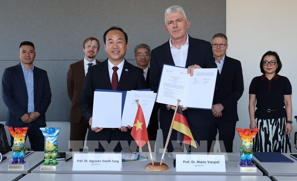 Theo phóng viên TTXVN tại Đức, ngày 17/4, tại thủ đô Berlin, trường Đại học CMC của Việt Nam và trường Schools of Next Practices (S-Next) thuộc Đại học Steinbeis của Đức đã ký kết Bản ghi nhớ thỏa thuận (MoA) về hợp tác trong lĩnh vực giáo dục và đào tạo nhân lực chất lượng cao.