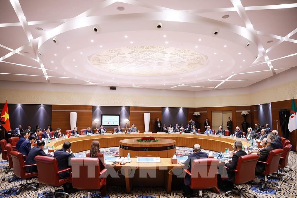 Trên tinh thần đó, Thủ tướng đề nghị hai bên phối hợp ưu tiên triển khai các nhóm giải pháp: Hai bên cần thắt chặt hơn nữa sự tin cậy chính trị, tăng cường trao đổi đoàn và dành ưu tiên cho nhau trong chính sách đối ngoại của mỗi nước; Algeria tiếp tục quan tâm, hỗ trợ Tập đoàn Công nghiệp Năng lượng Quốc gia Việt Nam (PVN) mở rộng đầu tư và hoạt động ổn định, hiệu quả, đóng góp tích cực hơn nữa vào sự phát triển của Algeria, là biểu tượng thành công cho hợp tác hai nước; Thúc đẩy hợp tác đầu tư, mở cửa thị trường hai nước cho mặt hàng thế mạnh của nhau, tăng cường trao đổi thương mại, bảo đảm cân bằng lợi ích của hai nước, trong đó Algeria hỗ trợ các doanh nghiệp Việt Nam tham gia các dự án chuyển đổi số, doanh nghiệp hai nước hợp tác trong lĩnh vực viễn thông.