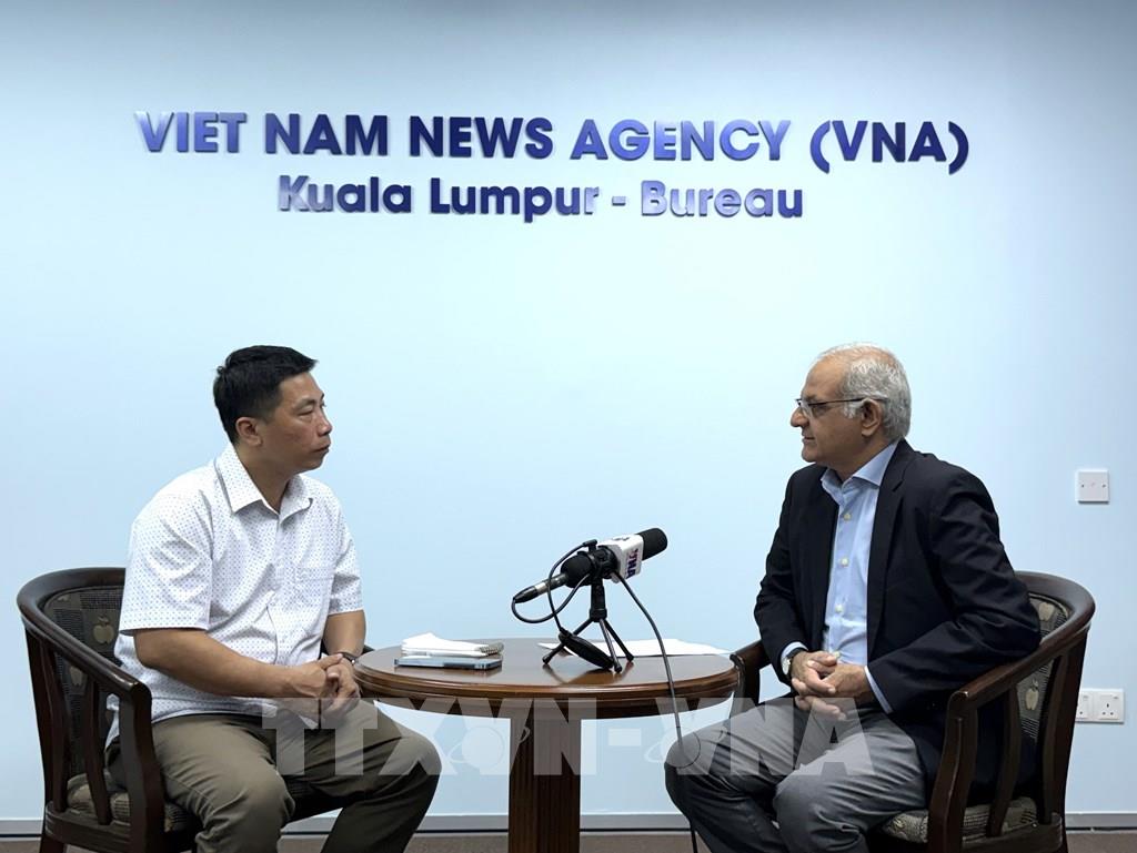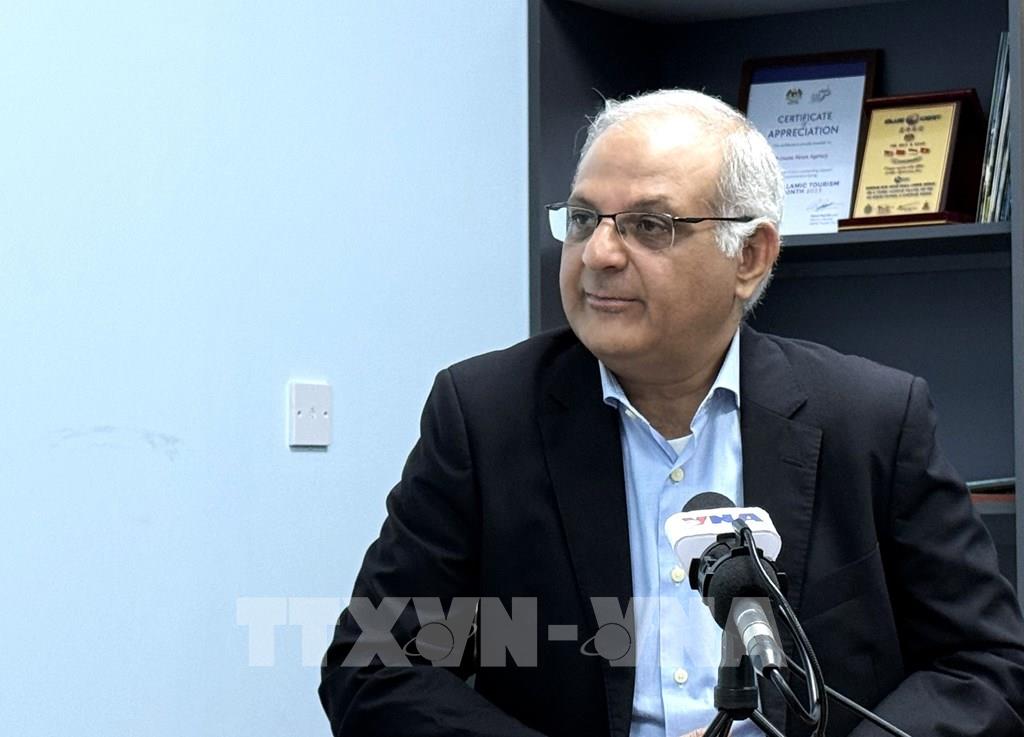 Nhà kinh tế trưởng toàn cầu Shan Saeed của tập đoàn công nghệ bất động sản IQI Global tại Malaysia trả lời phỏng vấn phóng viên TTXVN. Ảnh: Bình Thanh - PV TTXVN