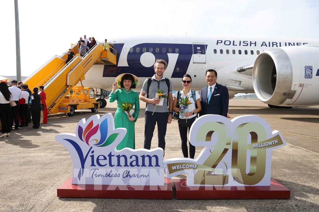 Lễ đón khách du lịch quốc tế thứ 20 triệu đến Việt Nam. Ảnh: Trần Công Đạt – TTXVN