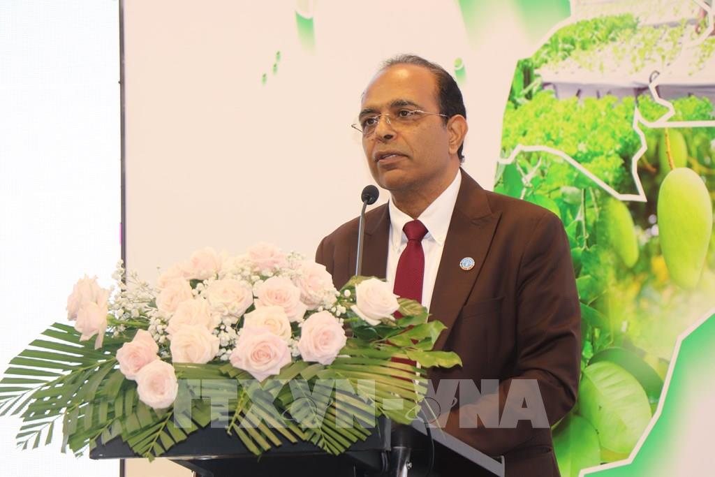 Ông Vinod Ahuja, Đại diện FAO tại Việt Nam, chia sẻ về những thách thức mà Đồng bằng sông Cửu Long phải đối mặt trong canh tác nông nghiệp. Ảnh: Thu Hiền - TTXVN