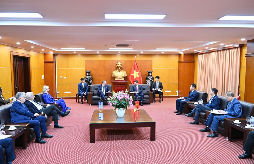 Quyền Bộ trưởng Lê Mạnh Hùng đã có buổi tiếp ông Ioannis Plakiotakis, Phó Chủ tịch thứ nhất Quốc hội Hy Lạp. Ảnh: Bộ Công Thương