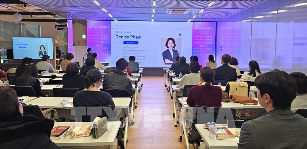 Đại diện thị trường Việt Nam, bà Denise Pham (KOVIRE), được cộng đồng biết đến với tên Ngọc Seoul, thuyết trình về thị trường bất động sản Việt Nam. Ảnh: Đức Thắng - Pv TTXVN tại Hàn Quốc