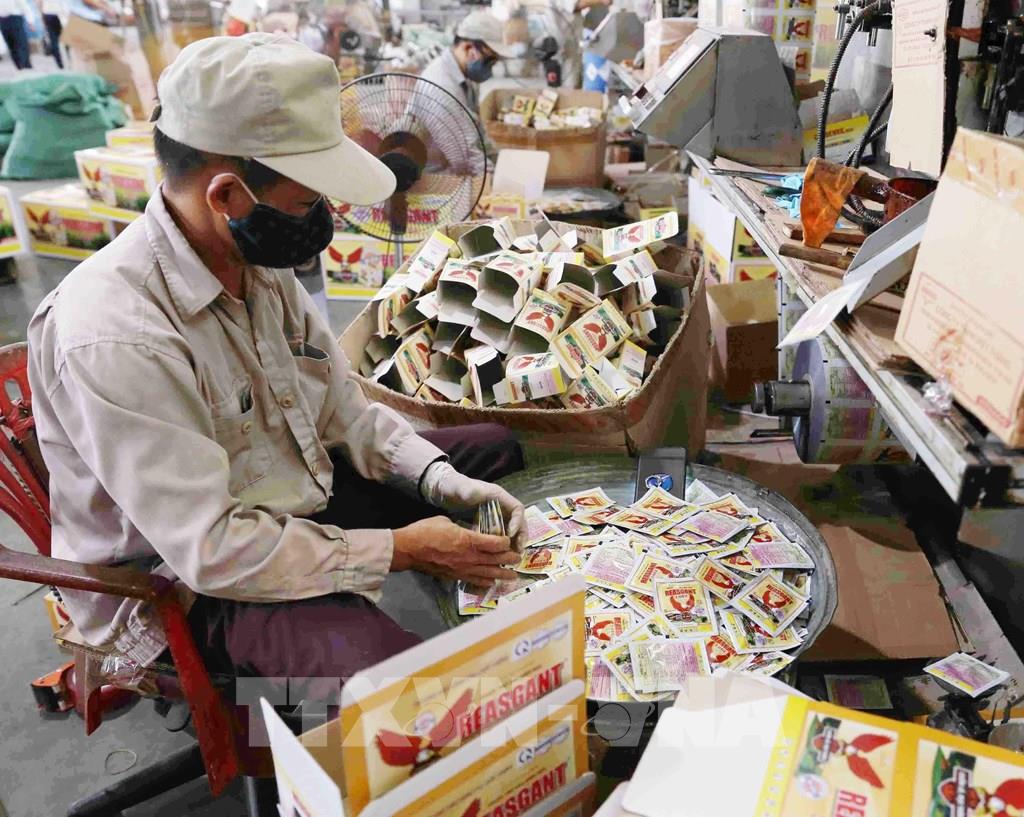Công ty TNHH Việt Thắng (VITHACO) chuyên gia công thuốc bảo vệ thực vật, thức ăn chăn nuôi và kinh doanh phân bón phục vụ trong nông nghiệp, cung cấp cho thị trường trong nước và xuất khẩu sang Lào và Campuchia. Ảnh: Vũ Sinh – TTXVN