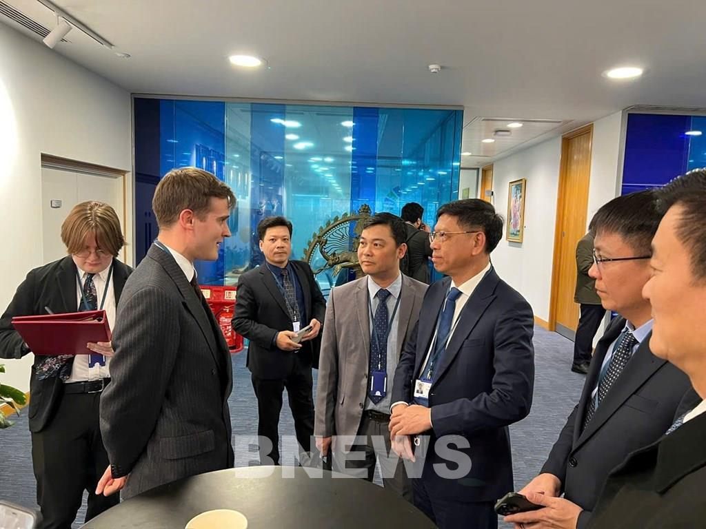 Thứ trưởng Nguyễn Xuân Sang và ông Đỗ Minh Hùng - Đại sứ Việt Nam tại Anh đã trao đổi về tình hình hợp tác song phương giữa Việt Nam và Anh nói chung, trong lĩnh vực giao thông vận tải hàng hải nói riêng cũng như tình hình tham gia của các nước thành viên trong khuôn khổ Khóa họp IMO lần thứ 34.