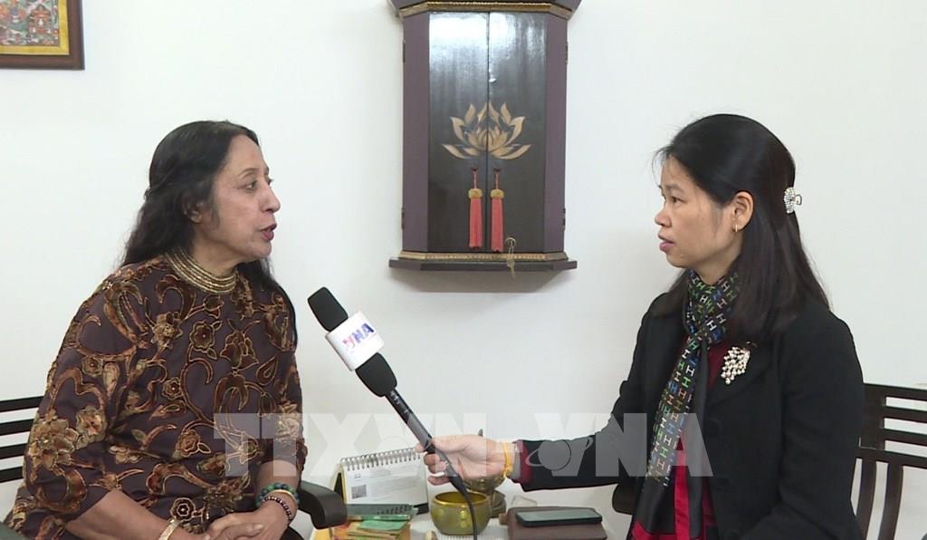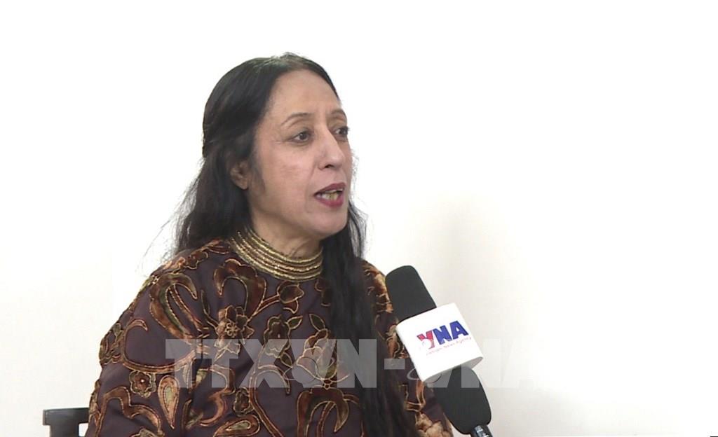 Giáo sư Reena Marwah trả lời phỏng vấn của phóng viên TTXVN. Ảnh: Quang Trung - PV TTXVN