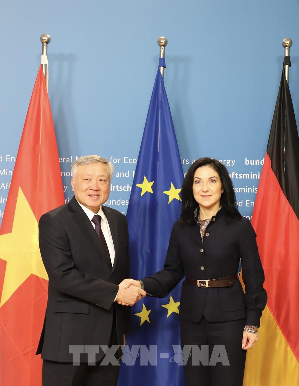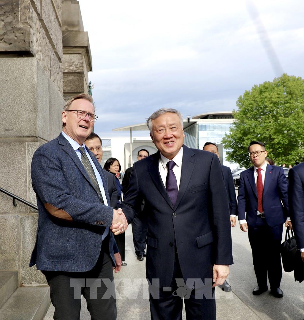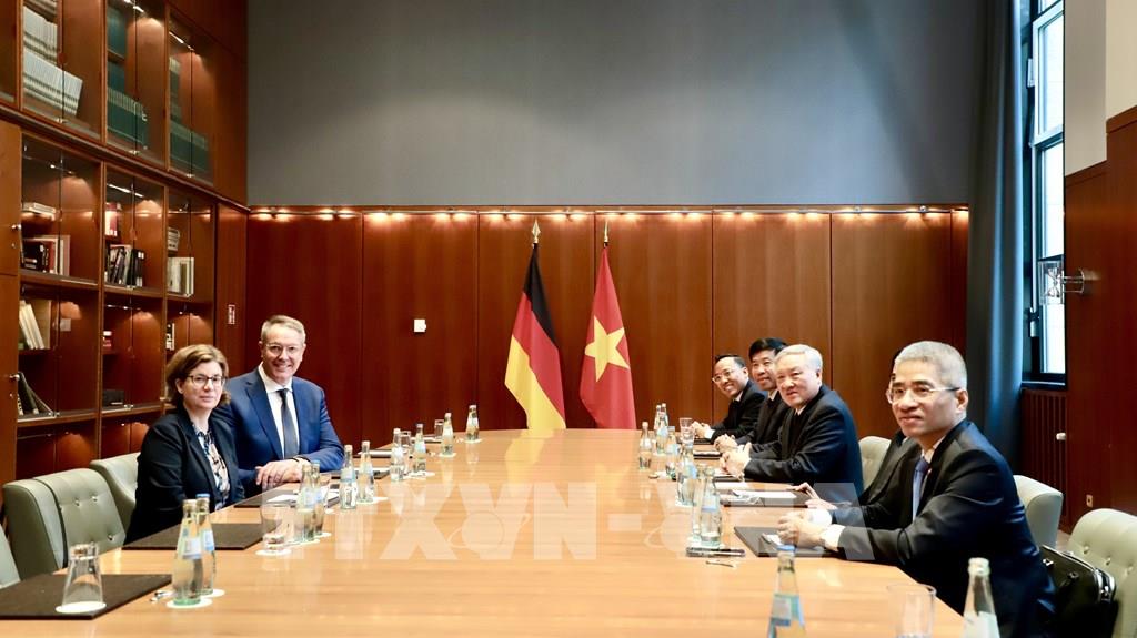 Lãnh đạo Đức bày tỏ ngưỡng mộ những nỗ lực của Việt Nam trong phát triển đất nước cũng như đánh giá cao quyết tâm xây dựng thành công các trung tâm tài chính quốc tế tại Đà Nẵng và Thành phố Hồ Chí Minh; cho biết sẵn sàng phối hợp, chia sẻ kinh nghiệm và đào tạo nguồn nhân lực cho Việt Nam trong lĩnh vực này.