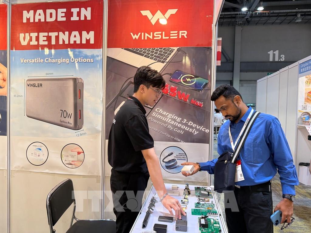 Ông Lê Song Hào, Giám đốc Công ty TNHH Điện tử SHDC – doanh nghiệp điện tử Việt Nam duy nhất tham gia triển lãm – cho biết công ty thiết kế và sản xuất các sản phẩm điện tử công nghệ cao 100% “Made in Vietnam”, gồm bo mạch, củ sạc đa năng, mạch điều khiển thiết bị gia dụng và linh kiện điện tử. Các sản phẩm hiện được xuất khẩu chủ yếu sang Mỹ, và công ty kỳ vọng tìm thêm đối tác quốc tế tại sự kiện lần này.