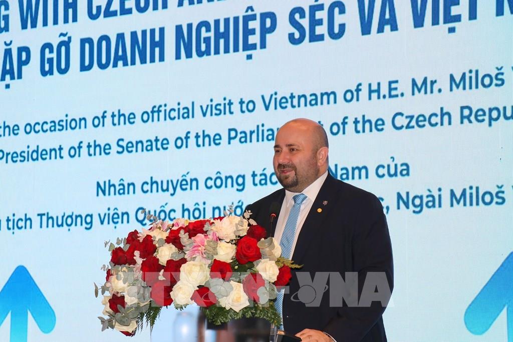 Đại diện doanh nghiệp Công hòa Séc phát biểu tại buổi gặp gỡ với Chủ tịch thượng viện Quốc hội nước Cộng hoà Séc Milos Vystrcil. Ảnh: Thanh Vũ-TTXVN