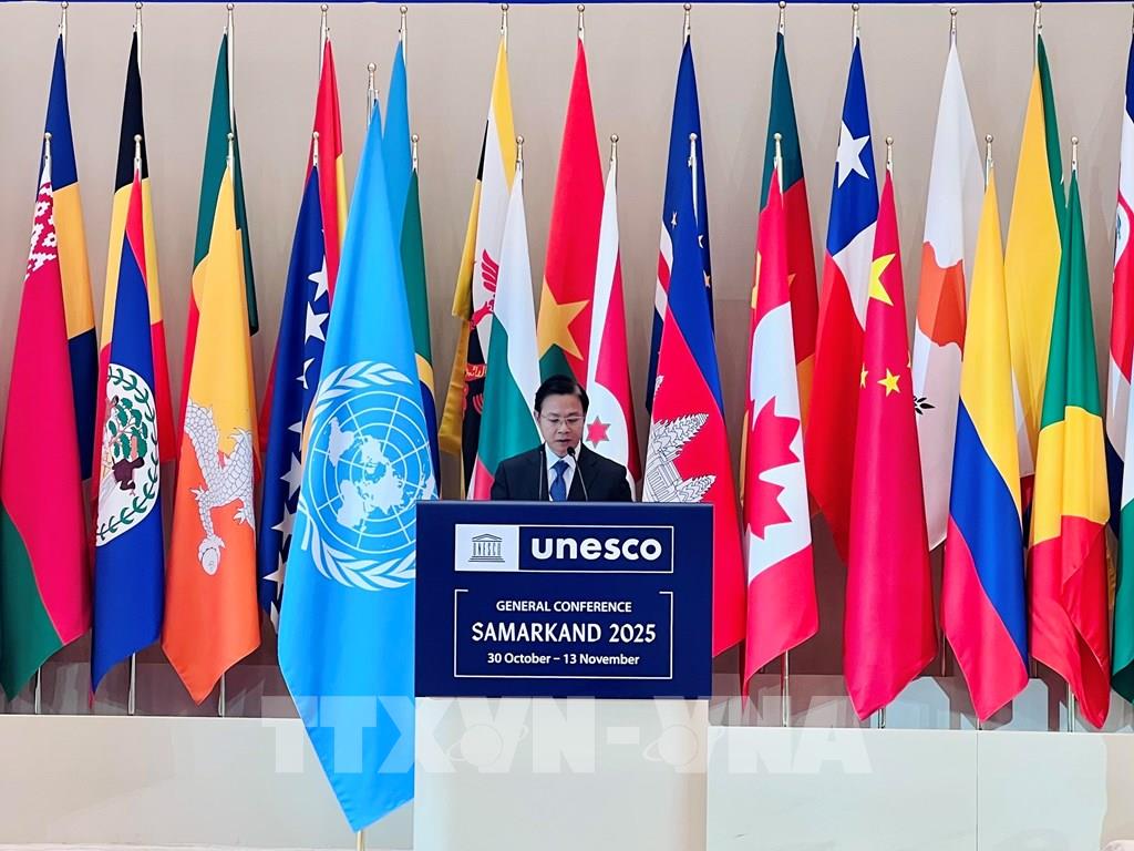 Trưởng đoàn Việt Nam bày tỏ vui mừng và đề cao những đóng góp gần đây của Việt Nam trong hệ sinh thái danh hiệu của UNESCO như danh hiệu Di sản văn hóa thế giới của Quần thể di tích và danh thắng Yên Tử – Vĩnh Nghiêm – Côn Sơn, Kiếp Bạc (tháng 7/2025), danh hiệu Thành phố Sáng tạo về lĩnh vực điện ảnh của Thành phố Hồ Chí Minh (tháng 10/2025) và việc UNESCO vinh danh và cùng kỷ niệm 300 năm ngày sinh danh nhân Lê Quý Đôn (tháng 10/2025). Đây không chỉ là niềm vinh dự của Việt Nam mà còn là sự tôn vinh các giá trị phổ quát của đa dạng văn hóa và đổi mới sáng tạo.