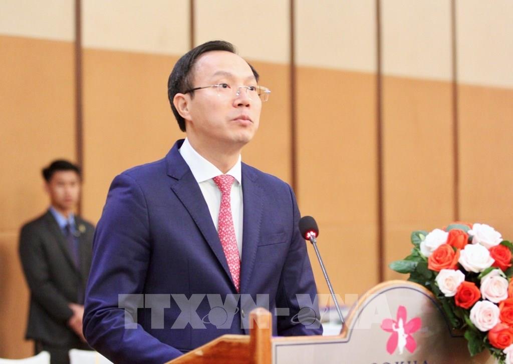 Ông Đoàn Trung Kiên, Phó Chủ tịch UBND tỉnh Tây Ninh phát biểu tại phiên toàn thể Hội nghị Hợp tác và Phát triển các tỉnh biên giới Việt Nam-Campuchia lần thứ 13. Ảnh: Quang Anh – PV TTXVN tại Campuchia