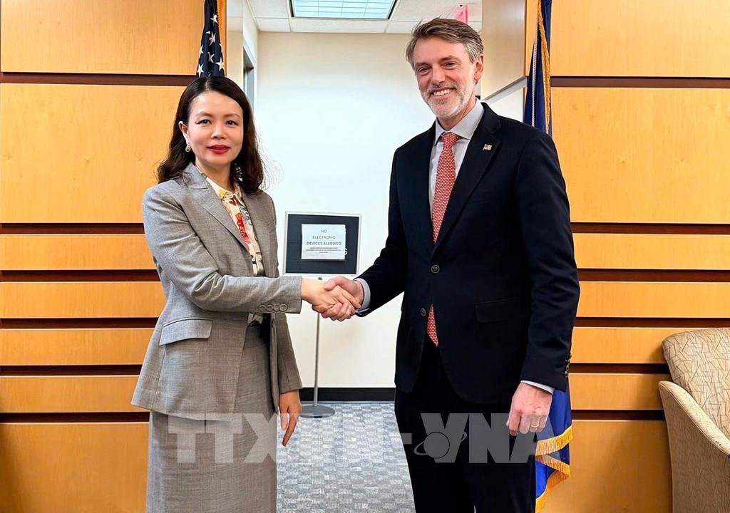 Thứ trưởng Ngoại giao Nguyễn Minh Hằng và Thứ trưởng Ngoại giao Mỹ Allison Hooker. Ảnh: TTXVN