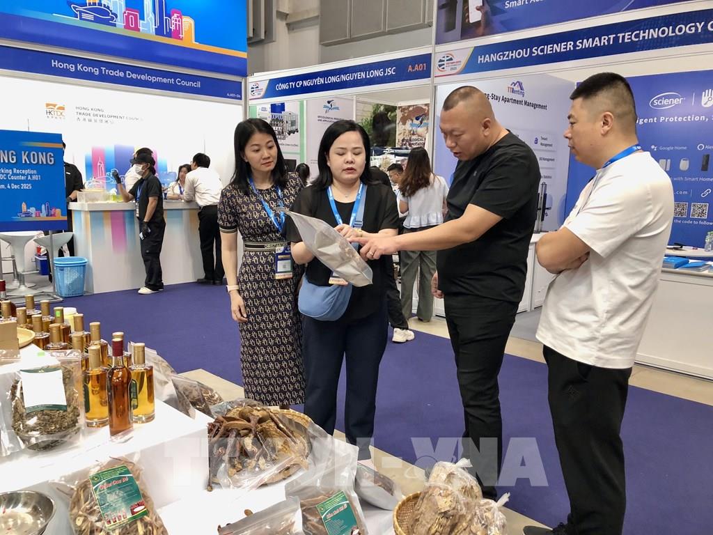 Một trong những điểm nổi bật của Vietnam Expo HCMC 2025 là sự góp mặt quy mô lớn của các khu gian hàng quốc gia và vùng lãnh thổ, thể hiện rõ sức hút và tầm ảnh hưởng quốc tế của hội chợ. Điển hình, khu gian hàng Hồng Kông (Trung Quốc) mang đến nhiều sản phẩm thiết thực và có nhu cầu cao như thiết bị gia dụng thông minh, phụ kiện điện tử, hàng tiêu dùng hiện đại và sản phẩm sáng tạo cho cuộc sống đô thị; đồng thời cung cấp giải pháp kinh doanh, công nghệ vật liệu và sản phẩm tiêu dùng chất lượng cao cho thị trường Việt Nam và khu vực.