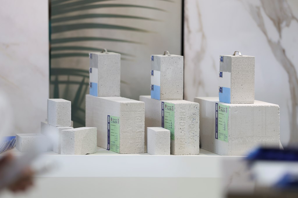 Gạch bê tông khí chưng áp làm vách ngăn trong căn nhà, đảm bảo hiệu quả chống cháy vượt trội. Ảnh: Thu Hằng/Bnews/TTXVN