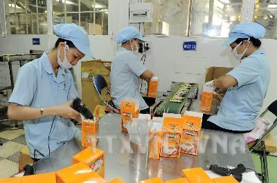 Đóng gói sản phẩm cà phê tan Vina cafe. Ảnh: Kim Phương/TTXVN