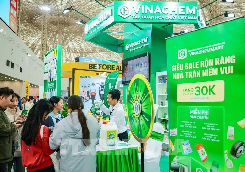 Các gian hàng của Vinachem được thiết kế hiện đại, sáng tạo, nổi bật với dấu ấn chuyển đổi số thông qua sàn thương mại điện tử VinachemMart – kênh bán hàng trực tuyến đầu tiên của ngành Hóa chất Việt Nam. Đây là bước tiến quan trọng trong việc đổi mới phương thức tiếp cận thị trường, nâng cao hiệu quả phân phối và quảng bá sản phẩm đến người tiêu dùng.