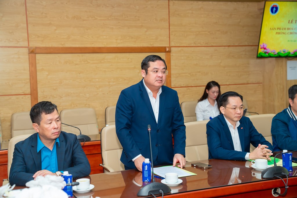 Chủ tịch Vinachem Phùng Quang Hiệp phát biểu trong sự kiện trao tặng sản phẩm hóa chất phục vụ phòng, chống dịch sau mưa lũ tại miền Trung. Ảnh: Vinachem