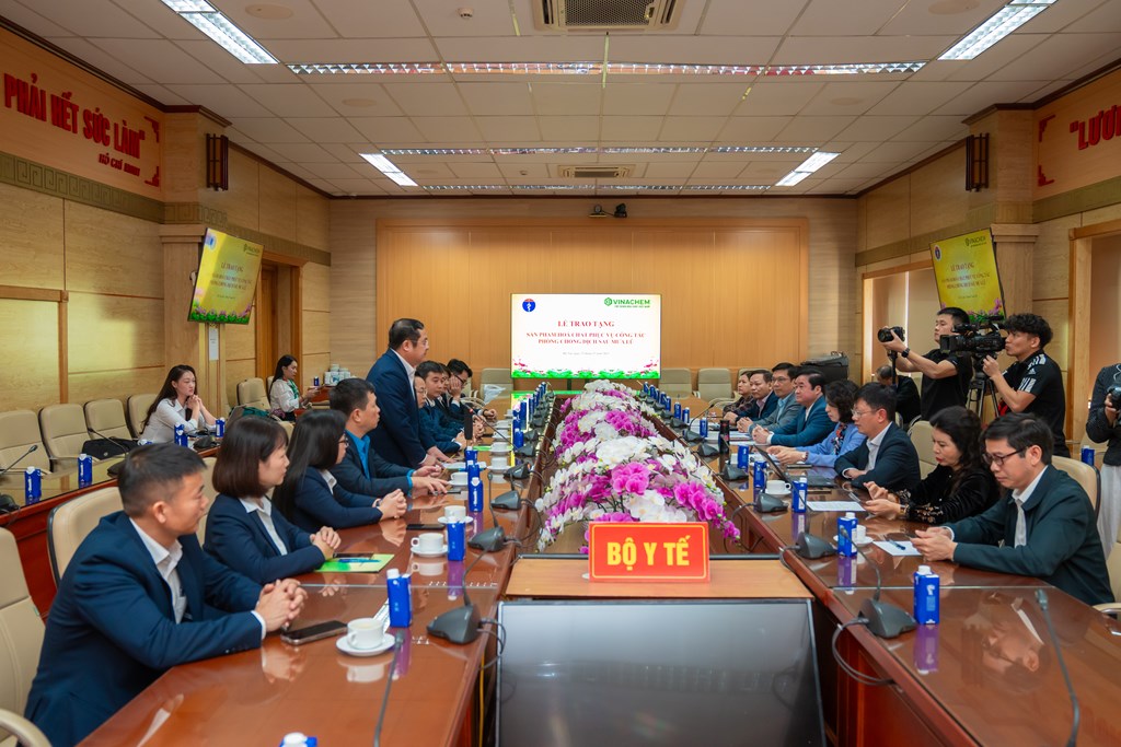 Toàn cảnh sự kiện trao hoá chất khử khuẩn ngày 25/11. Ảnh: Vinachem
