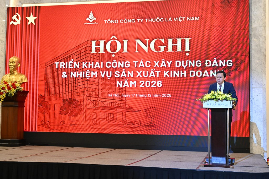 Để hoàn thành những mục tiêu đề ra, thực hiện theo đúng chỉ đạo của Chính phủ, của Bộ Tài chính, Tổng công ty Thuốc lá Việt Nam sẽ tập trung thực hiện 10 nhóm giải pháp như: Nâng cao năng lực quản trị, công tác tái cơ cấu, đổi mới, sắp xếp tổ chức của Tổng công ty; Đẩy mạnh thực hiện các dự án đầu tư trọng điểm để sớm khai thác có hiệu quả; Ứng dụng số hóa, chuyển đổi số vào sản xuất kinh doanh, quản trị điều hành,... Đây là phát biểu của ông Hà Quang Hòa, Tổng Giám đốc Tổng công ty Thuốc lá Việt Nam (Vinataba) tại Hội nghị triển khai công tác xây dựng Đảng và nhiệm vụ sản xuất kinh doanh năm 2026 diễn ra tại Hà Nội chiều 17/12.