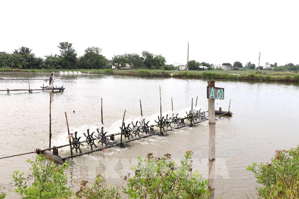 Ao nuôi cá rô phi ở xã Vĩnh Kim. Ảnh: Thanh Hòa- TTXVN