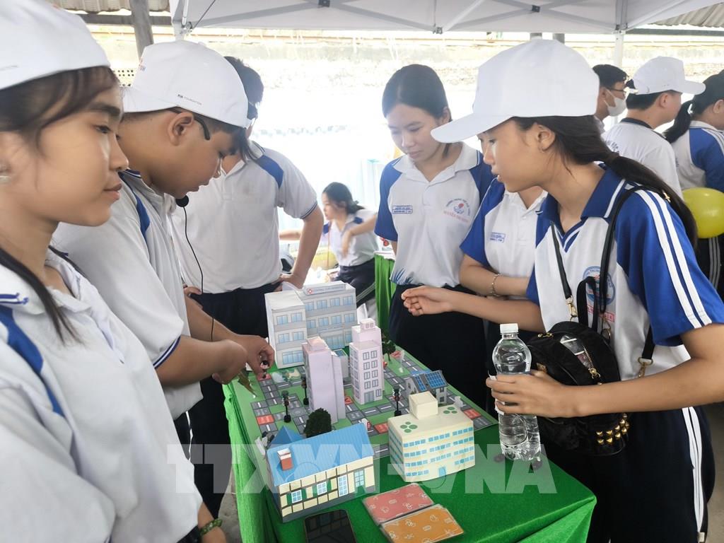 Học sinh các trường tham gia hoạt động các trường tại lễ phát động. Ảnh: Huỳnh Phúc Hậu - TTXVN