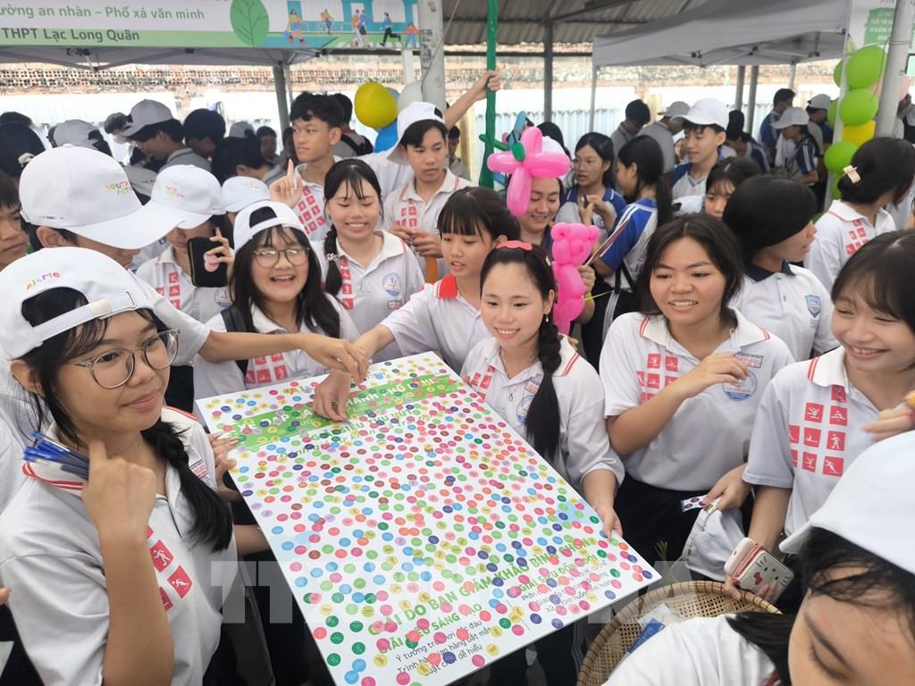 Học sinh các trường tham gia hoạt động tại lễ phát động. Ảnh: Huỳnh Phúc Hậu - TTXVN