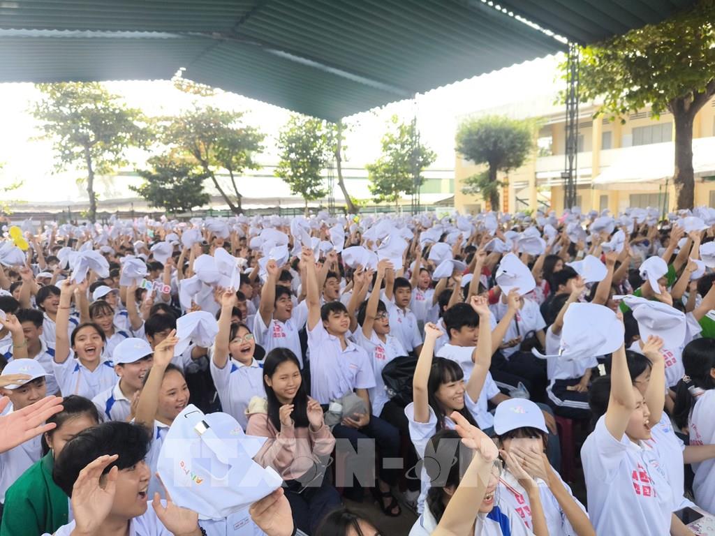 Đại biểu lãnh đạo tỉnh và học sinh tham dự tọa đàm. Ảnh: Huỳnh Phúc Hậu - TTXVN