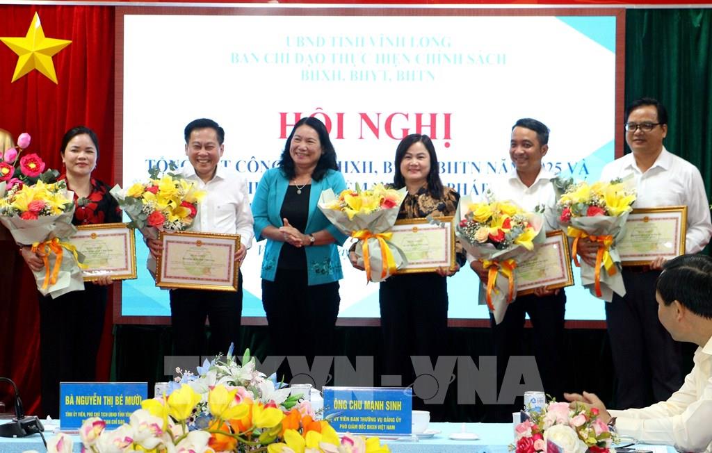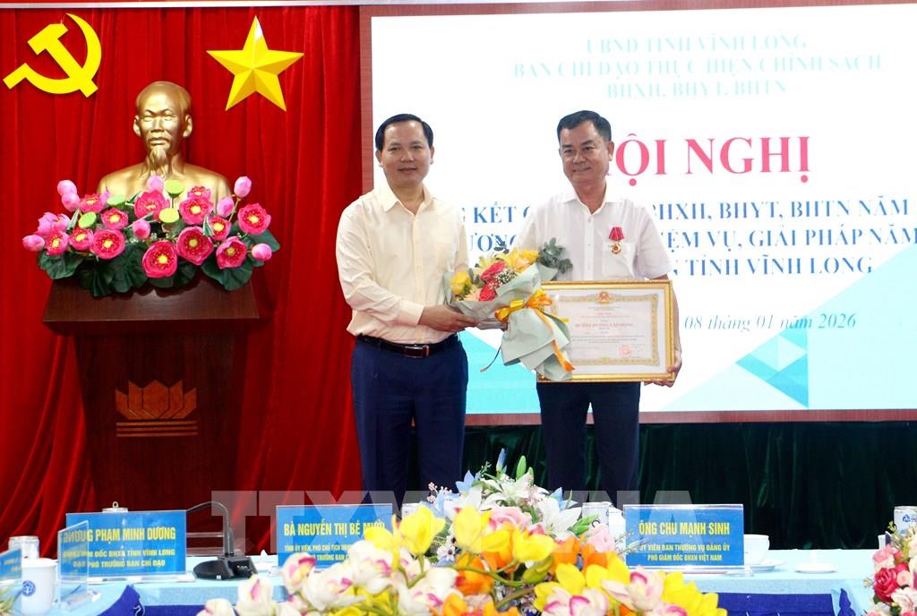 Theo số liệu từ Bảo hiểm xã hội tỉnh Vĩnh Long, năm 2025, số người tham gia bảo hiểm xã hội của tỉnh chiếm 28% lực lượng lao động; số người tham gia bảo hiểm thất nghiệp đạt 22,8% lực lượng lao động; tỷ lệ bao phủ bảo hiểm y tế đạt 95,8% dân số. Trong năm, các cơ sở y tế đã tiếp nhận khoảng 7,3 triệu lượt người khám, chữa bệnh bảo hiểm y tế, với tổng chi phí hơn 3.300 tỷ đồng. Công tác cải cách hành chính và chuyển đổi số tiếp tục được đẩy mạnh thông qua việc triển khai ứng dụng VssID, sử dụng căn cước công dân gắn chíp trong khám, chữa bệnh... Ngành Bảo hiểm xã hội tỉnh tiếp tục hiện đại hóa phương thức chi trả không dùng tiền mặt với 95% người hưởng lương hưu và trợ cấp bảo hiểm xã hội nhận tiền và 100% người hưởng trợ cấp thất nghiệp được chi trả qua tài khoản cá nhân, qua đó tạo thuận lợi cho người dân trong quá trình thụ hưởng các chế độ, chính sách.Tại hội nghị, một cá nhân vinh dự nhận Huân chương Lao động hạng Ba của Chủ tịch nước, 10 cá nhân nhận Bằng khen của Thủ tướng Chính phủ, 5 tập thể và 10 cá nhân nhận Bằng khen của UBND tỉnh Vĩnh Long về thành tích xuất sắc trong công tác bảo hiểm năm 2025.