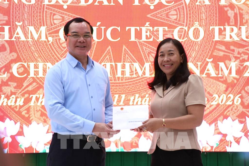 Năm 2026 là năm có ý nghĩa quan trọng, mở đầu giai đoạn phát triển mới, Bộ trưởng Nguyễn Đình Khang tin tưởng đồng bào Khmer sẽ tiếp tục phát huy truyền thống yêu nước, tinh thần đoàn kết, tự lực, tự cường; cùng cấp ủy, chính quyền địa phương thực hiện thắng lợi các mục tiêu phát triển kinh tế - xã hội, xây dựng quê hương ngày càng giàu đẹp, văn minh.Thay mặt các vị chức sắc cùng đồng bào Khmer trên địa bàn tỉnh, Hòa thượng Thạch Sok Xane, Phó Chủ tịch Hội đồng Trị sự Giáo hội Phật giáo Việt Nam, Trưởng ban Trị sự Giáo hội Phật giáo Việt Nam tỉnh Vĩnh Long, Chủ tịch Hội Đoàn kết sư sãi yêu nước tỉnh bày tỏ niềm phấn khởi, đồng thời gửi lời tri ân sâu sắc đến Đảng và Nhà nước đã luôn quan tâm, ban hành nhiều chủ trương, chính sách về dân tộc và tôn giáo, qua đó bảo đảm quyền tự do tín ngưỡng cho nhân dân nói chung, đồng bào Khmer nói riêng. Hòa thượng khẳng định thời gian tới sẽ tiếp tục tuyên truyền, vận động chư tăng và phật tử thực hiện nghiêm các chủ trương của Đảng, chính sách, pháp luật của Nhà nước trong lĩnh vực dân tộc, tôn giáo; đồng thời phát huy tinh thần đoàn kết, chung sức xây dựng quê hương ngày càng phát triển, văn minh, giàu đẹp.