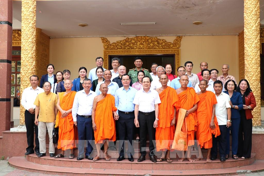 Đoàn công tác chụp hình lưu niệm cùng Hội Đoàn kết sưu sãi yêu nước tỉnh Vĩnh Long. Ảnh: Thanh Hòa - TTXVN