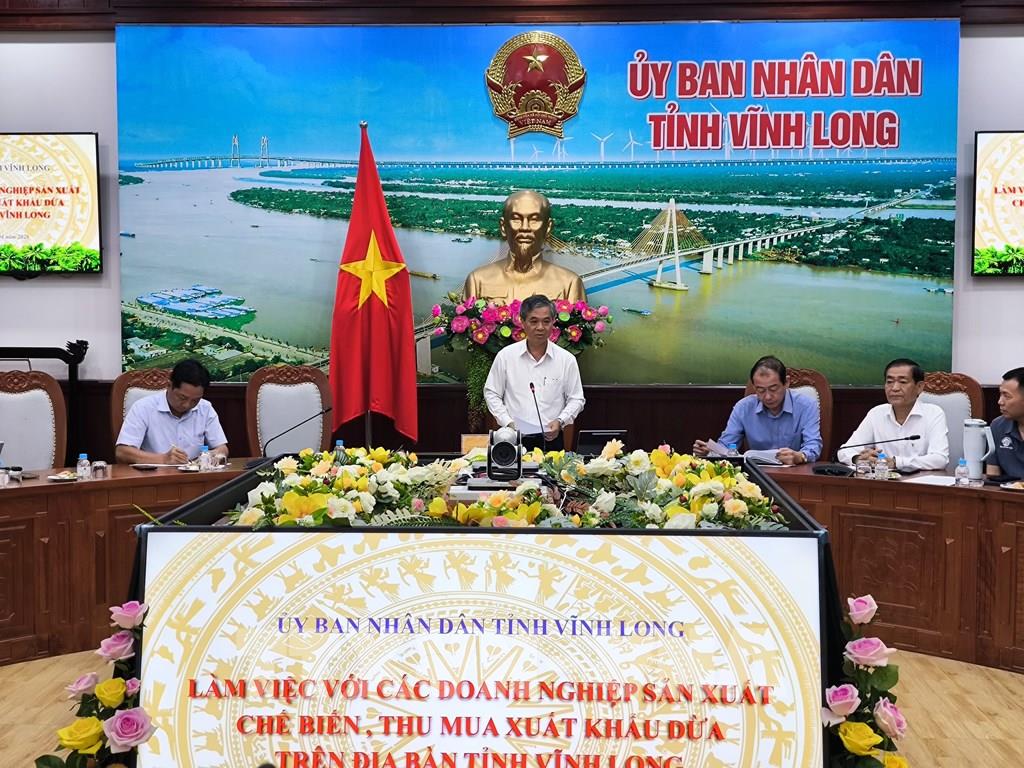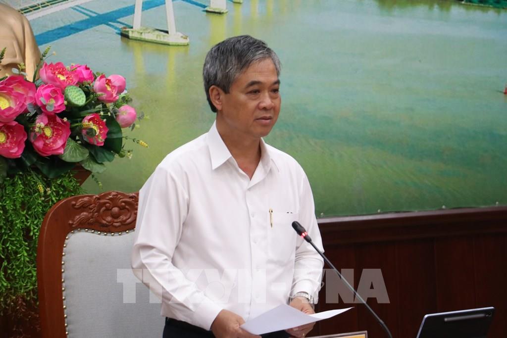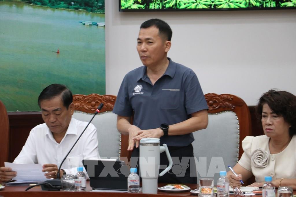 Phó Chủ tịch UBND tỉnh Vĩnh Long Châu Văn Hòa phát biểu tại buổi làm việc. Ảnh: Huỳnh Phúc Hậu - TTXVN