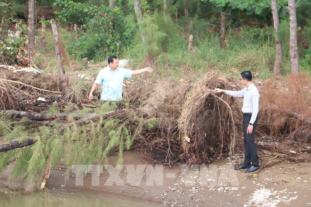 Sóng biển gây sạt lở đất, cây rừng gãy đổ. Ảnh: Huỳnh Phúc Hậu - TTXVN