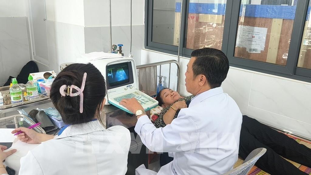 Siêu âm chuẩn đoán bệnh cho người dân xã Ba Tri (Vĩnh Long). Ảnh: Huỳnh Phúc Hậu - TTXVN