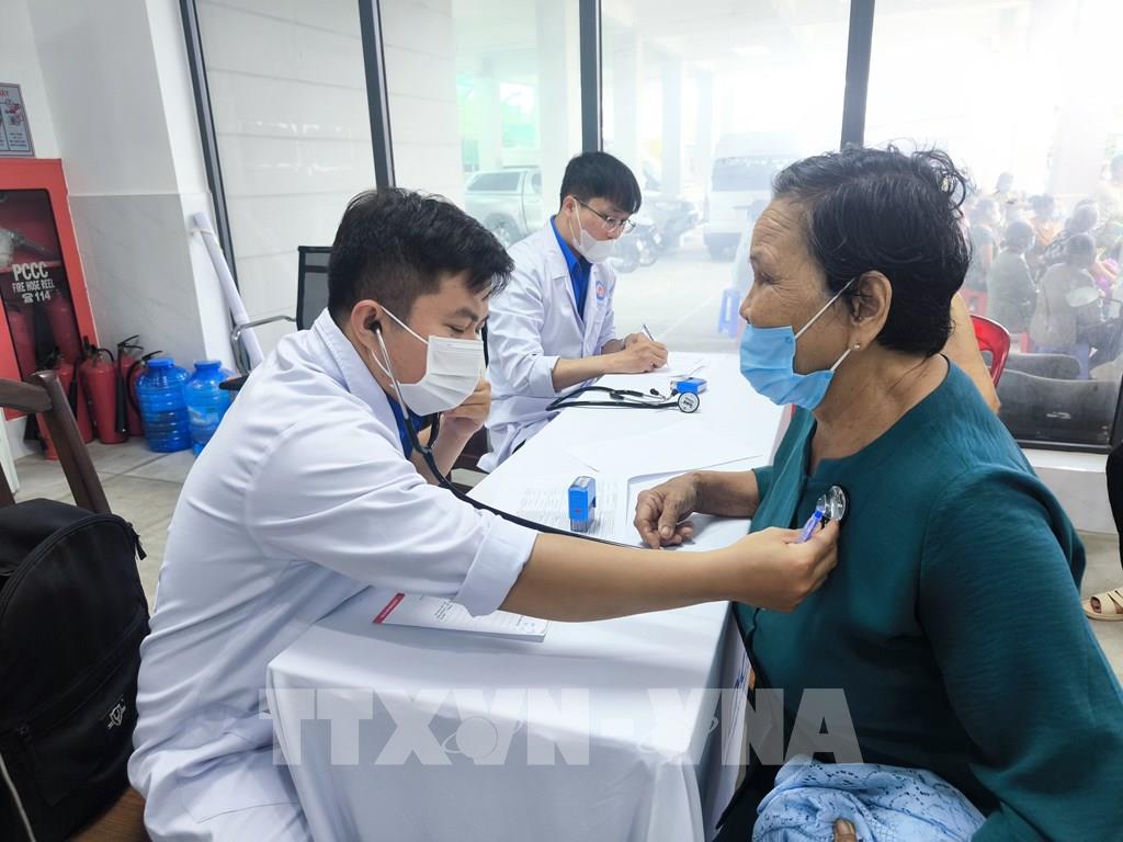 Khám bệnh cho người dân xã Ba Tri (Vĩnh Long). Ảnh: Huỳnh Phúc Hậu - TTXVN