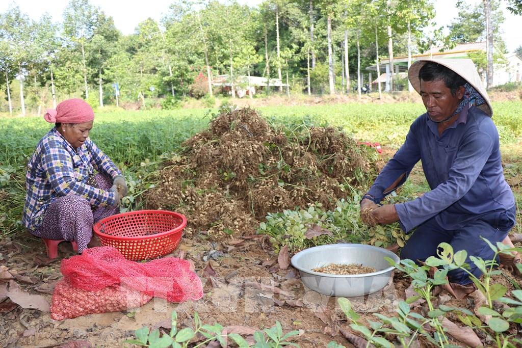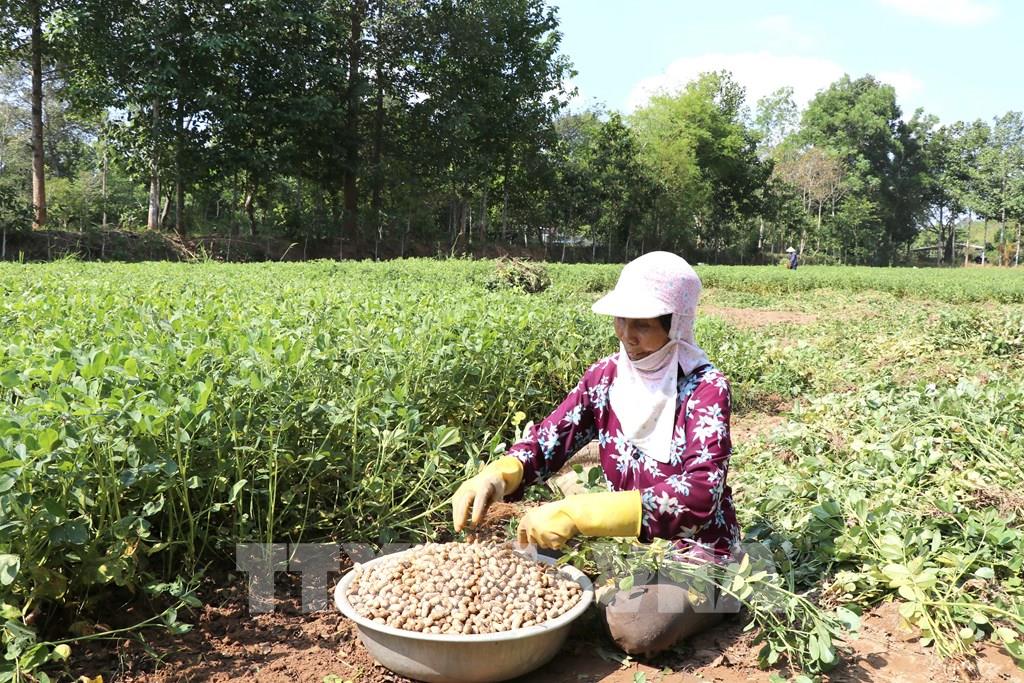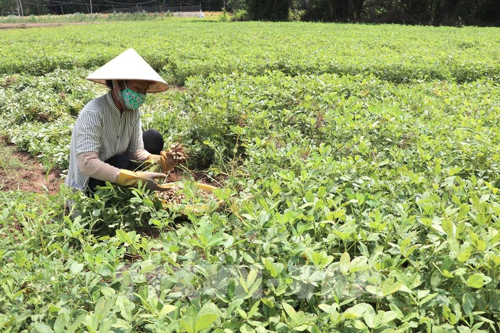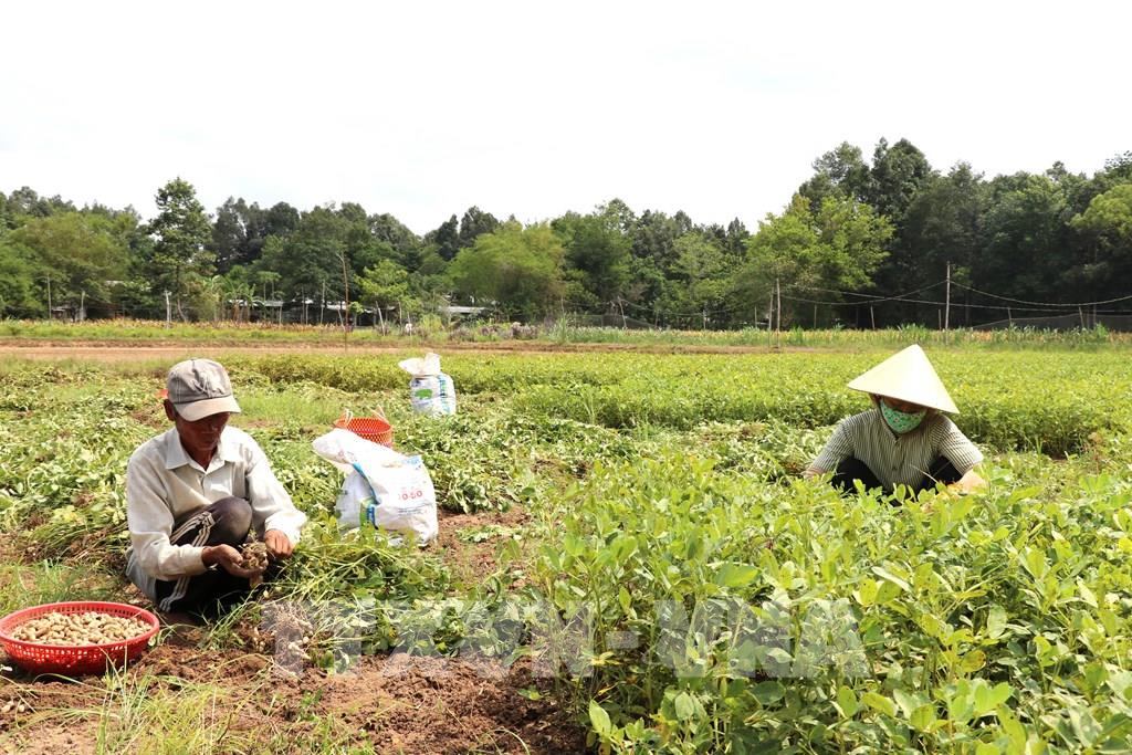 Nông dân xã Long Hiệp, tỉnh Vĩnh Long thu hoạch lạc. Ảnh: Thanh Hòa - TTXVN