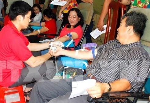 Các tình nguyện viên tham gia hiến máu. Ảnh: Lê Thúy Hằng – TTXVN