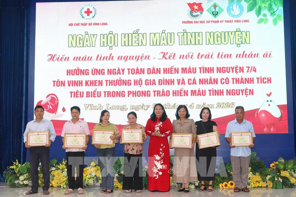 Ngày 6/4, Hội Chữ thập đỏ tỉnh Vĩnh Long phối hợp cùng Trường Đại học Sư phạm Kỹ thuật Vĩnh Long, Bệnh viện Huyết học - Truyền máu thành phố Cần Thơ tổ chức Ngày hội hiến máu, hưởng ứng Ngày toàn dân hiến máu tình nguyện 7/4 và tôn vinh, khen thưởng các gia đình, cá nhân có thành tích tiêu biểu trong phong trào hiến máu tình nguyện.