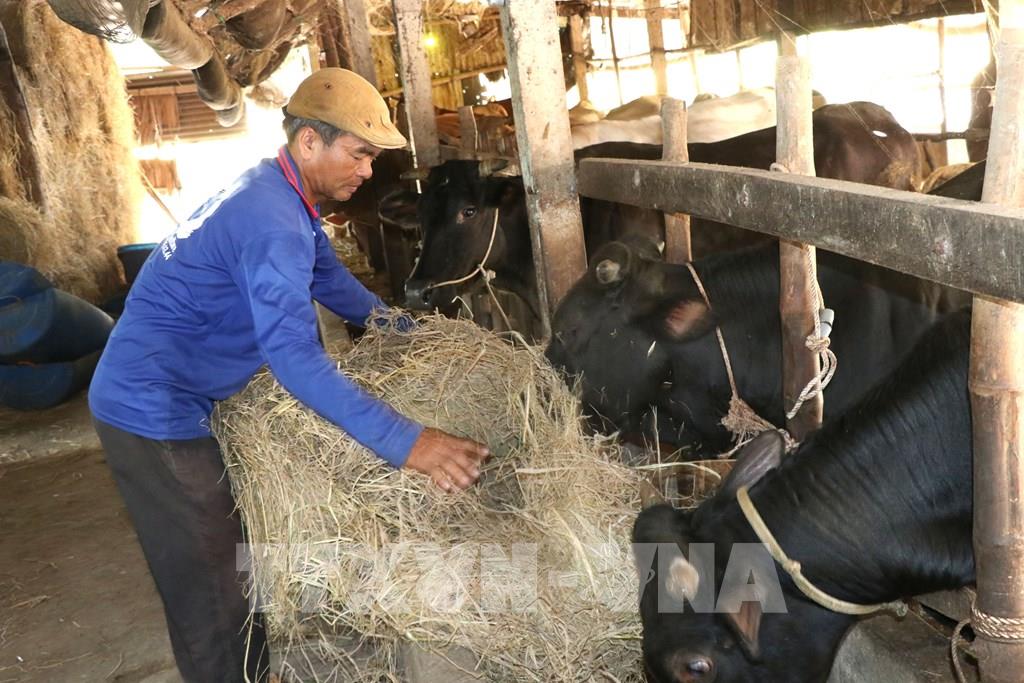 Mô hình nuôi bò của gia đình ông Thạch Vi La, xã Song Lộc (Vĩnh Long). Ảnh: Thanh Hòa - TTXVN