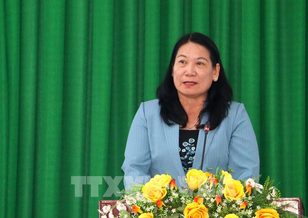Phó Chủ tịch UBND tỉnh Vĩnh Long Nguyễn Thị Bé Mười phát biểu tại Hội nghị. Ảnh: Lê Thúy Hằng – TTXVN