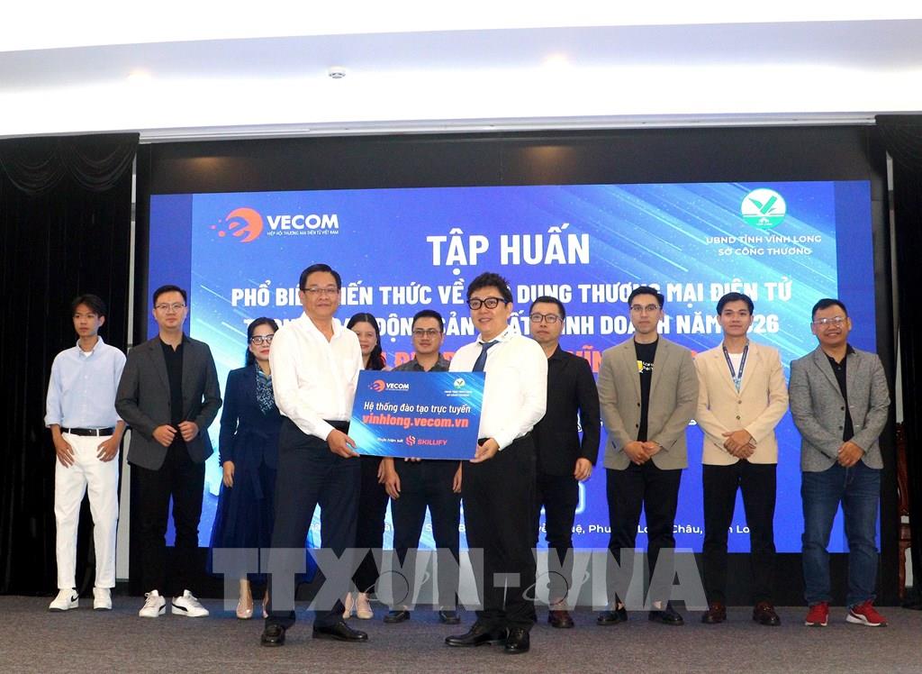 Dịp này, Hiệp hội Thương mại điện tử Việt Nam cùng Hội viên Skillify đã xây dựng và trao tặng Sở Công Thương tỉnh Vĩnh Long hệ thống đào tạo trực tuyến tại tên miền vinhlong.vecom.vn. Hệ thống dự kiến chính thức vận hành từ giữa tháng 4/2026 nhằm góp phần giúp tỉnh Vĩnh Long nâng cao hiệu quả triển khai phát triển nguồn nhân lực phục vụ chuyển đổi số trên địa bàn.
