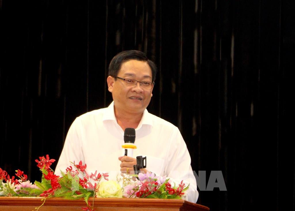 Phó Giám đốc Sở Công thương tỉnh Vĩnh Long Phạm Phước Trãi phát biểu tại chương trình. Ảnh: Phúc Sơn – TTXVN