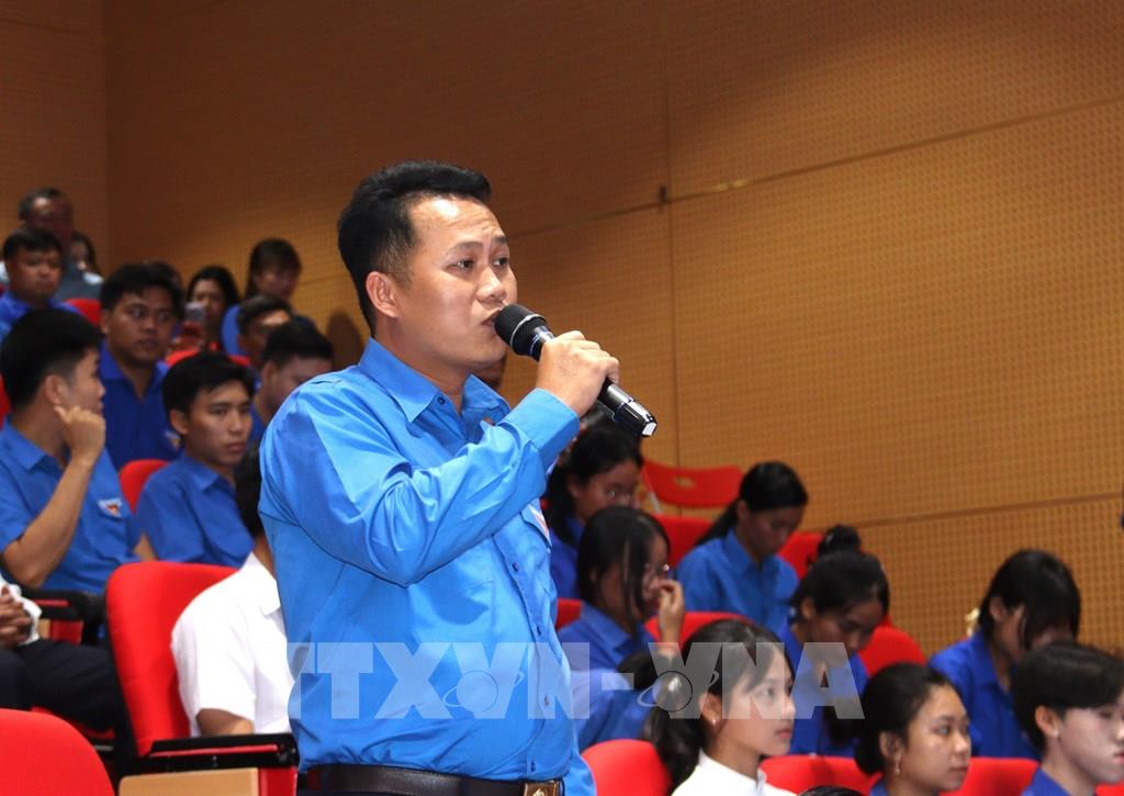 Thanh niên phát biểu tại chương trình đối thoại. Ảnh: Lê Thúy Hằng – TTXVN