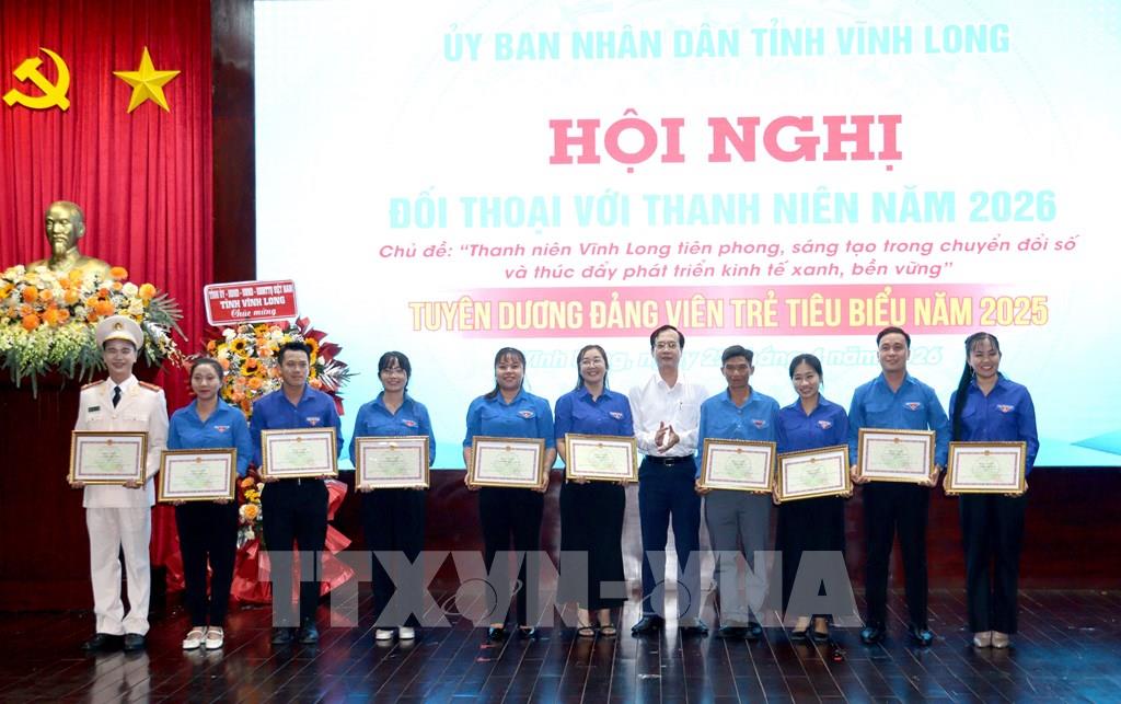 UBND tỉnh Vĩnh Long vừa tổ chức Hội nghị đối thoại với thanh niên năm 2026 và tuyên dương đảng viên trẻ tiêu biểu với chủ đề “Thanh niên Vĩnh Long tiên phong, sáng tạo trong chuyển đổi số và thúc đẩy phát triển kinh tế xanh, bền vững”.