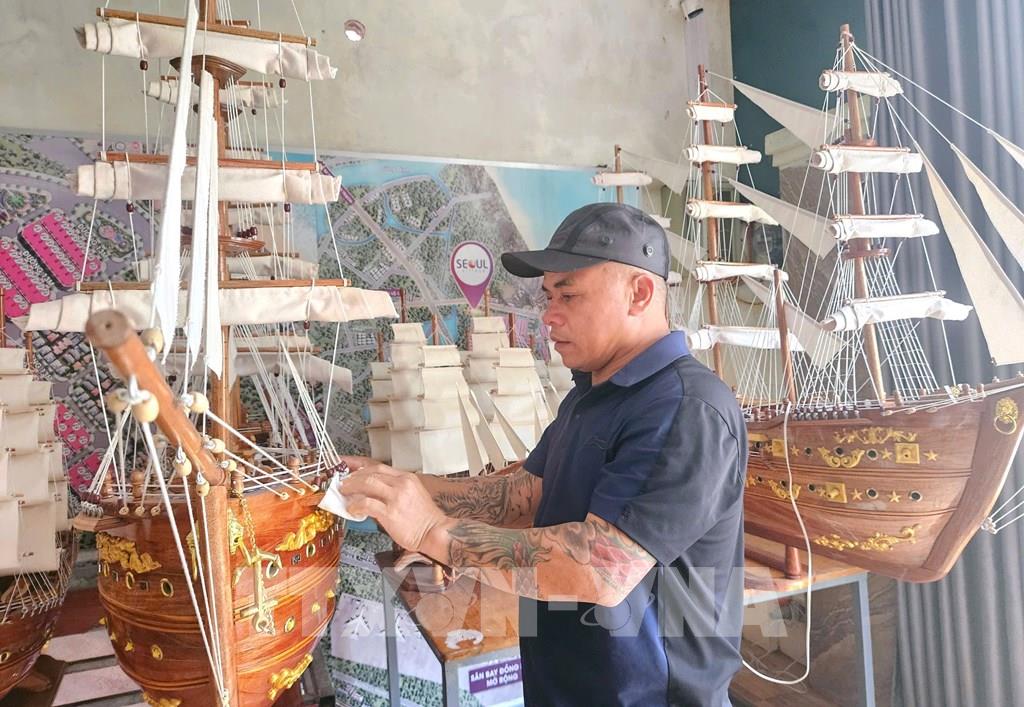 Anh Dương Quang Hương, trú tại xã Nam Trạch được Phòng giao dịch Ngân hàng Chính sách xã hội Bố Trạch cho vay 70 triệu đồng để phát triển mô hình tàu du lịch phong thủy mang lại thu nhập ổn định. Ảnh: Nguyên Linh – TTXVN