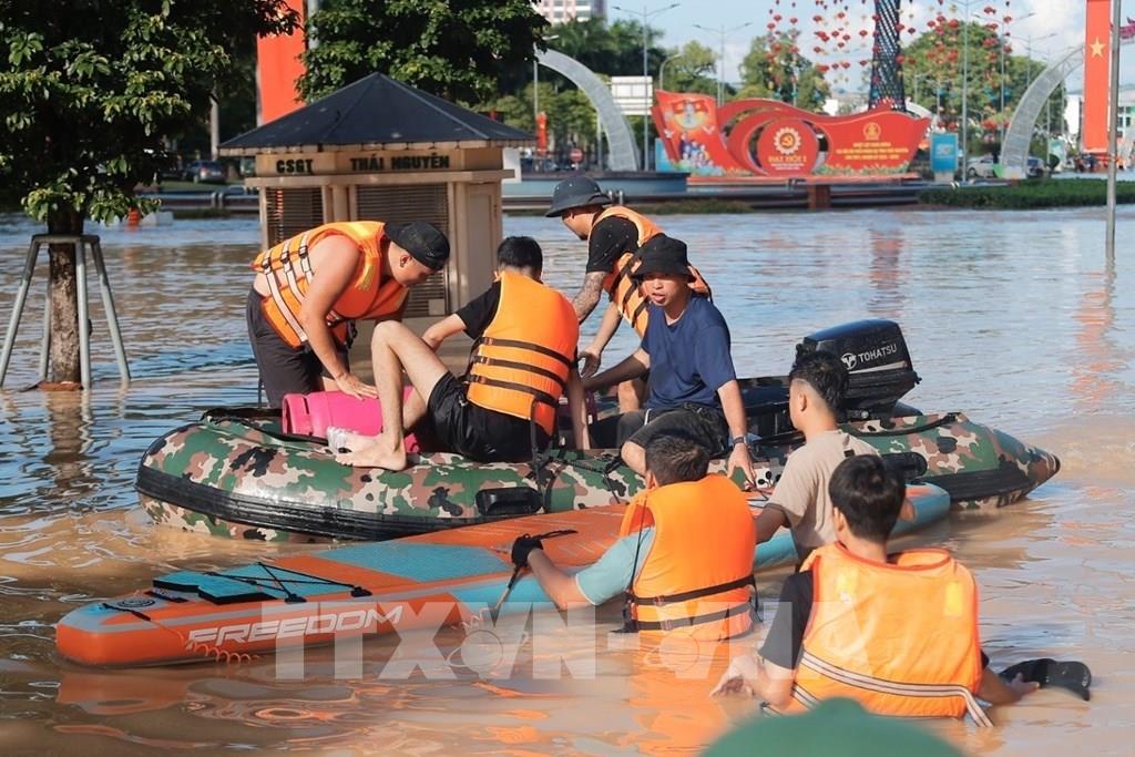 Cũng trong diễn biến lũ tại Thái Nguyên, đêm 8/10, tại đoạn đê Trung Thành thuộc phường Tân Phú (cũ), Thái Nguyên, hàng trăm người dân đã cùng với chính quyền địa phương khẩn cấp tham gia hộ đê khi nước sông Cầu dâng cao.