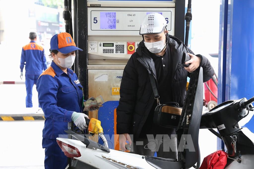 Mua, bán xăng e5 tại điểm kinh doanh xăng dầu Petrolimex trên đường Trần Hưng Đạo, quận Hoàn Kiếm, Hà Nội. Ảnh: Lê Đông - TTXVN
