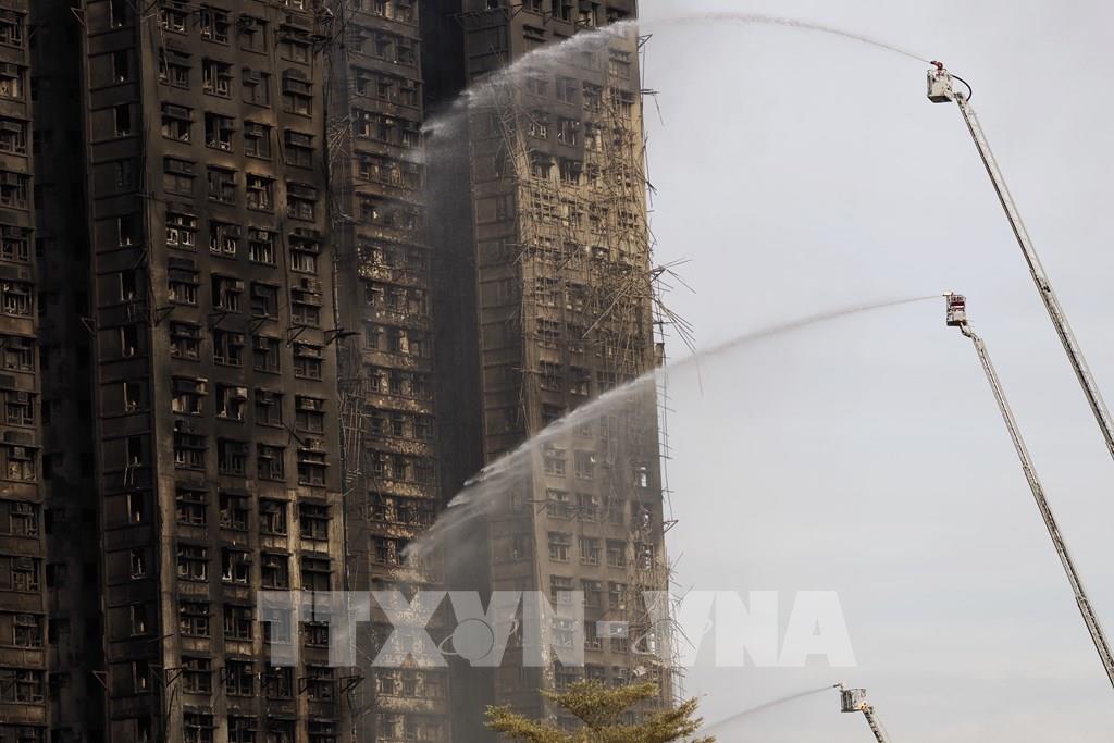 Hiện trường vụ cháy chung cư ở Hong Kong (Trung Quốc) ngày 27/11/2025. Ảnh: THX/TTXVN